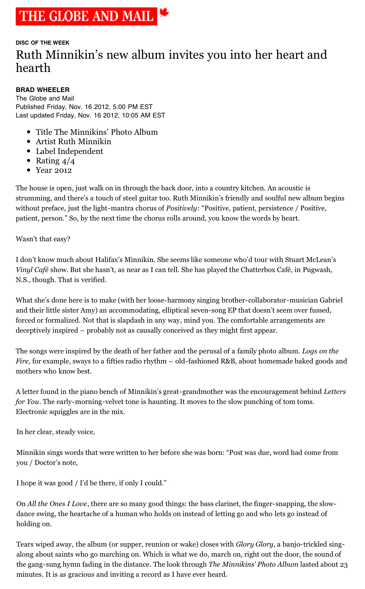 http://www.theglobeandmail.com/arts/music/ruth-minnikins-new-album-invites-you-into-her-heart-and-hearth/article5364317/
